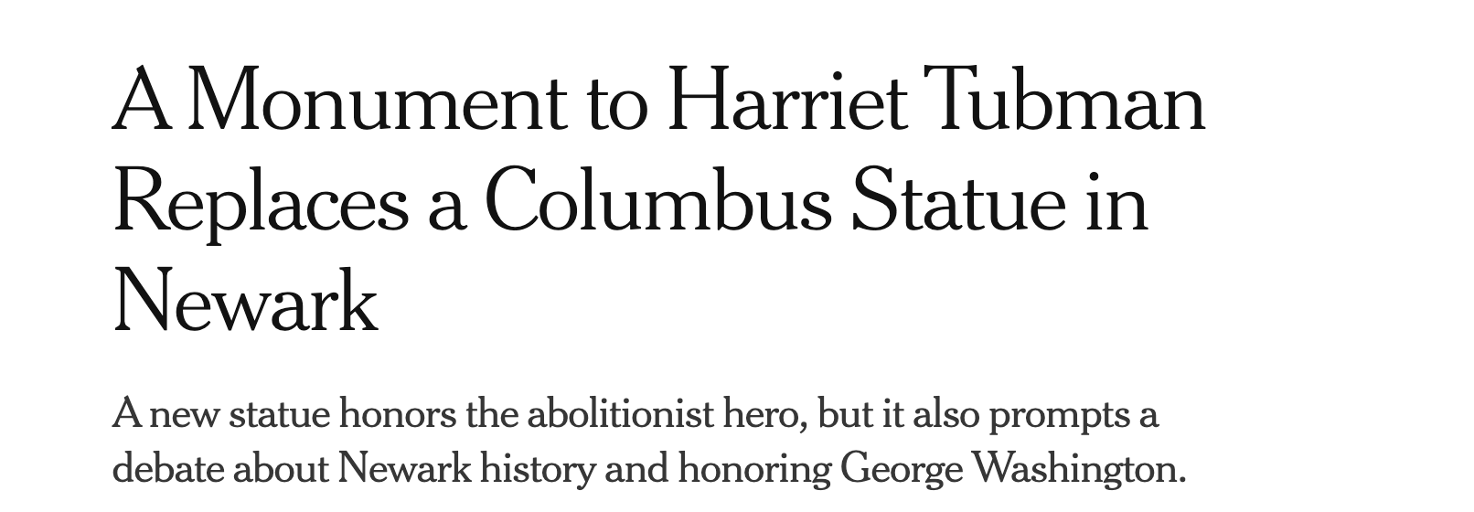 “Monumental”—an original audio story on Harriet Tubman and Newark’s history of abolitionism that I Executive Produced for Audible, and for the Shadow of a Face monument audio installation— written up in the New York Times.